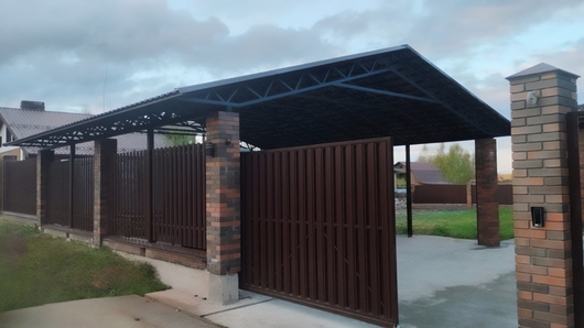 Двускатный навес с крышей из профнастила для зоны стоянки автомобиля Арт-716